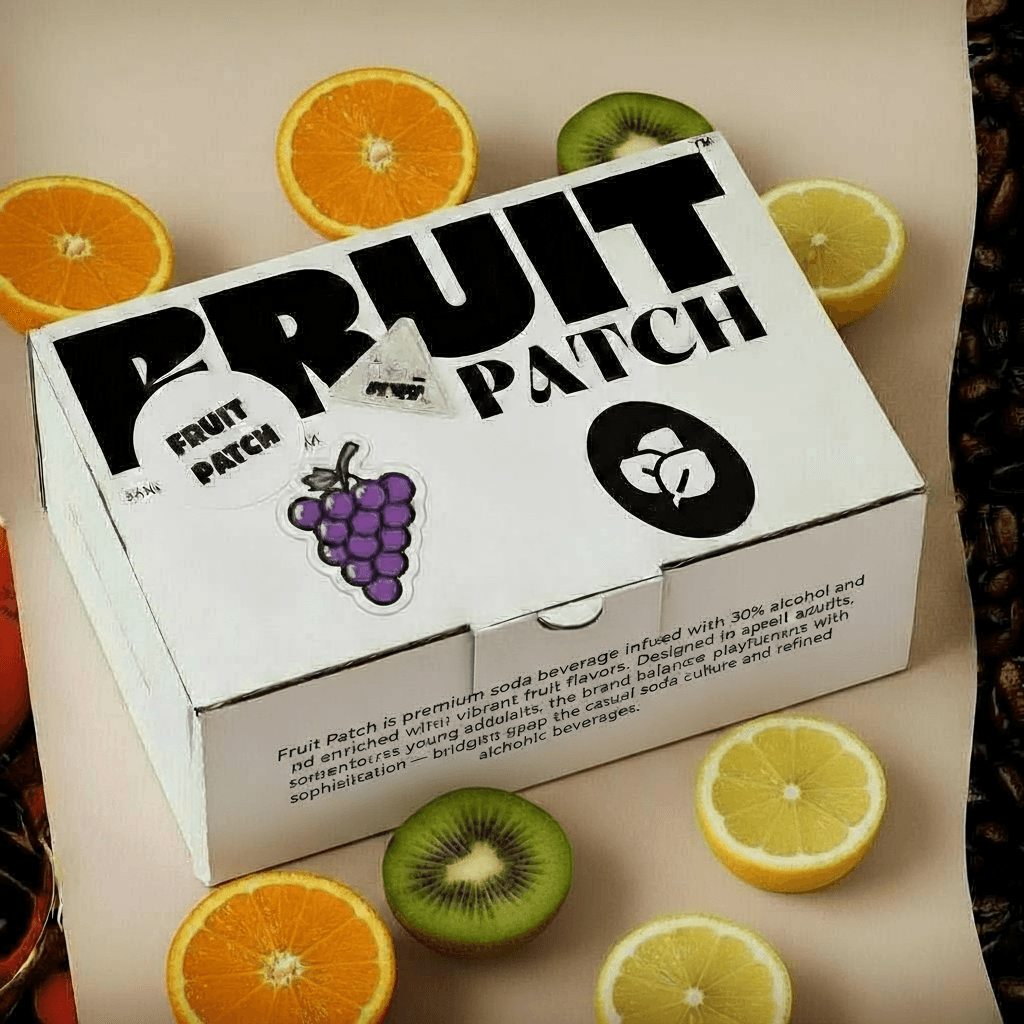 Fruit Patch is a premium soda beverage infused with 30% alcohol and enriched with vibrant fruit flavors. Designed to appeal to adventurous young adults, the brand balances playfulness with sophistication — bridging the gap between casual soda culture and refined alcoholic beverages.
