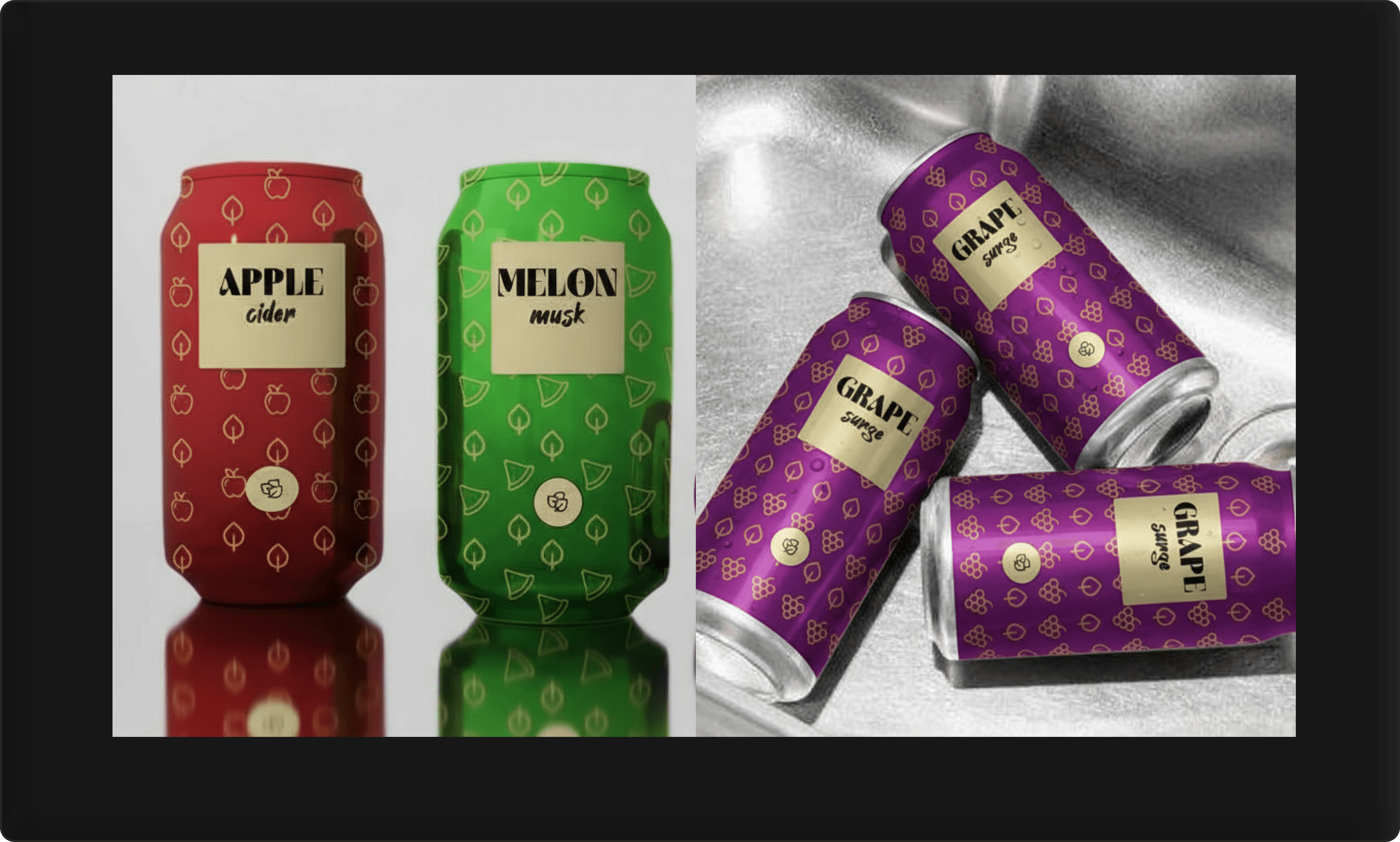 360° Experience: I developed a system of repeating, flavor-specific patterns to wrap around the entire can. This ensures the product is visually engaging from any direction and creates a strong, energetic shelf presence when products are placed side-by-side. The patterns are the "fun" element, making the can feel vibrant and alive.