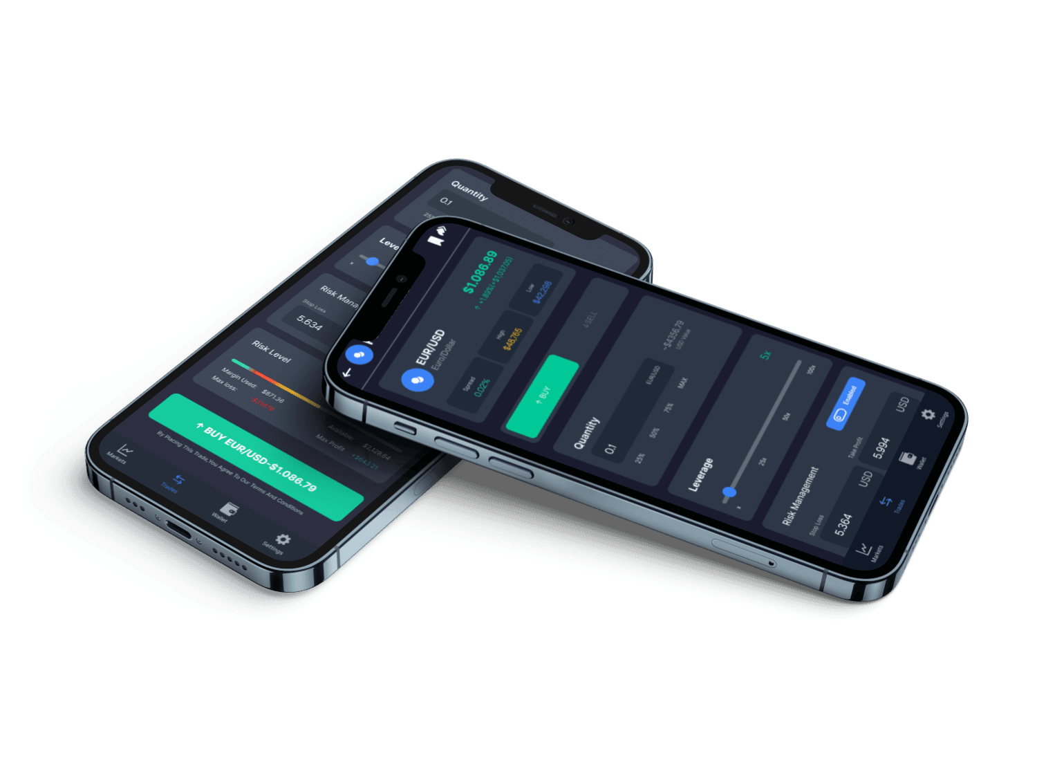 Risk Management: This is a standout feature. The dedicated "Risk Management" section and the visible "Risk Level" indicator (e.g., "MODERATE") actively inform the user about their potential exposure, promoting responsible trading. The final CTA button dynamically includes the action, asset, and price (e.g., "BUY EUR/USD - $1.086.79"), leaving no room for ambiguity.