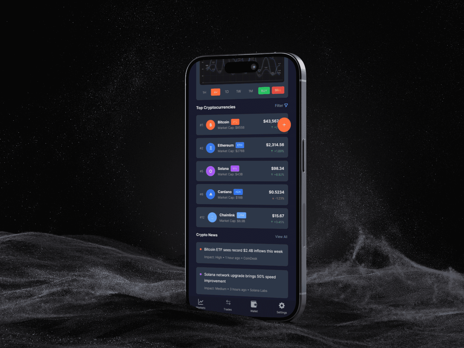 Dashboard & Markets Screen (Home): This screen serves as an excellent information hub.